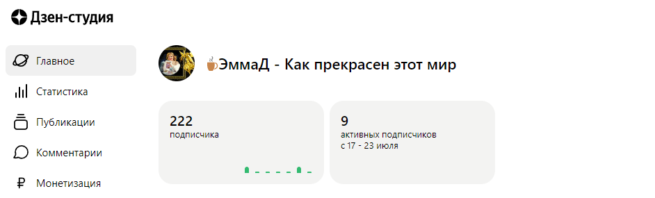 А вот единица, это значит совершенно другое. Это означает, что ты не пошла к доске, не было желания, и тебе влепили кол. Я помню, что однажды, когда учитель поставила мне двойку, я возмутилась: — А за что Вы мне двойку поставили? Я же не отвечала! Это означало, что нужно было поставить кол! Нет, я не была такой наглой школьницей, но заскоки бывали. Эдакий чёрненький юмор. Сейчас, когда я заглянула в свою Дзен-студию, то увидела такую картину: Вы видите? Сразу три двойки! И меня это обрадовало. Красивая цифра, стройная! Двести двадцать два подписчика, а когда-то я с нетерпением ждала первую сотню. Еще красивее была бы цифра 2222! Но это в мечтах. Не доживу! Правда