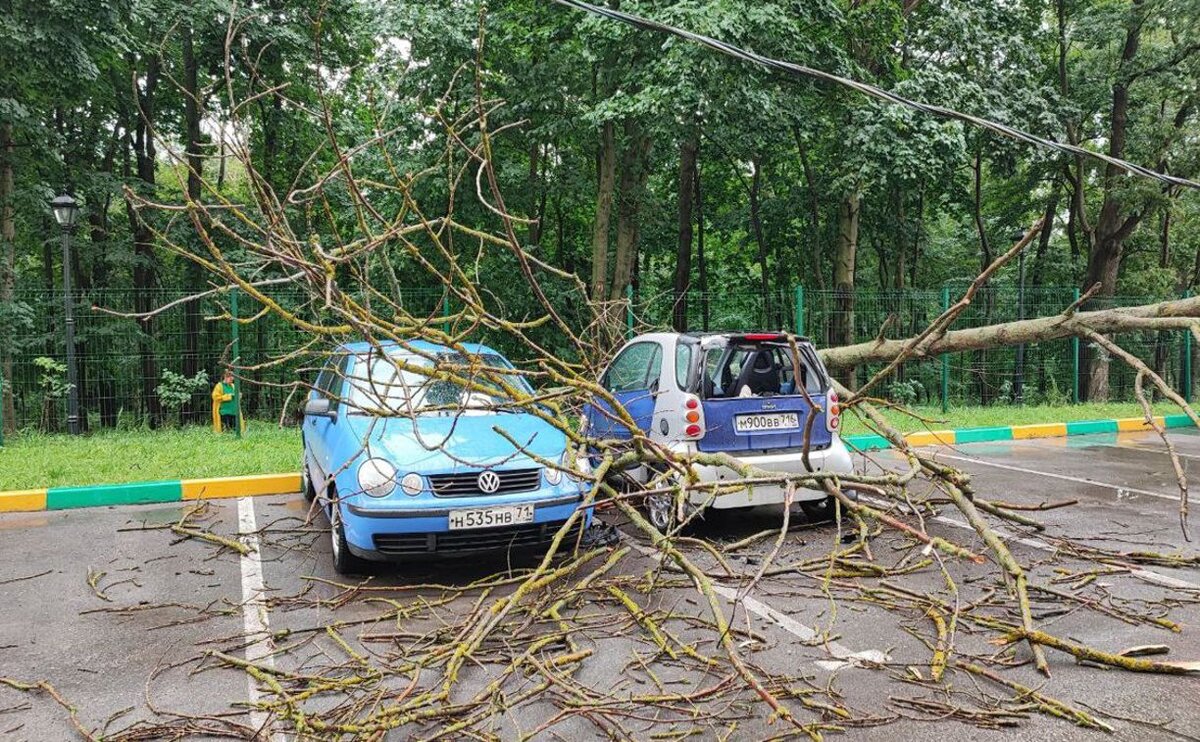 В Платоновском парке упавшее дерево повредило два автомобиля: фоторепортаж