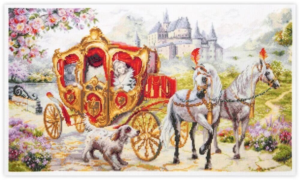 Всем большой вышивальный привет! Я давненько не обращала внимания на новинки "Чудесной иглы" и не показывала их вам - все Овен и МП Студия меня впечатляли! А "Чудесная игла" навыпускала много нового, в одну статью все это не поместится, поэтому сейчас я покажу часть новинок, объединенных одной тематикой. И тематика эта- романтика! Правда, очень много новинок с парами в этот раз выпущено. А по вышивальным приметам- хочешь обрести вторую половинку или улучшить текущие отношения - вышей пару. Хоть животных, хоть птиц, хоть людей... Первая новинка - арт. 350-764 "Тайное свидание". Размер: 47 х 27 см., 47 цветов мулине, канва Аида 16-го каунта ZWEIGART, белого цвета. Цена 2595 рублей. Прямо моя любимая из новинок😁😁😁😁 Потому что меньше всего этот сюжет похож на тайное свидание. Шикарная карета, богато украшенная, стоит посередине дороги, возле моста, где наверняка в любую минуту может кто- то проехать и спалить парочку. Рядом бегает большая и громкая собака, которая наверняка лает и тож