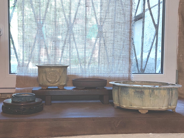Нас, естественно, больше всего интересовала бонсайная керамика. Клим сказал, что она пользуется популярностью не только у бонсаистов. Плошки, поднятые на ножках, заказывают и те, кто выращивает суккуленты, а также формирует композиции из различных растений.