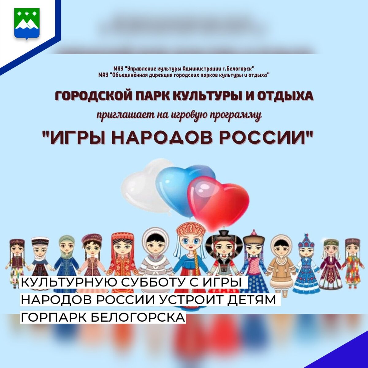 Культурную субботу с игры народов России устроит детям горпарк Белогорска