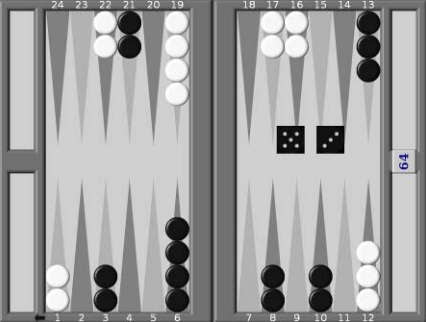 4. Пятый пункт В самом начале игры самым важным пунктом на вашей стороне доски, который нужно занять, является 5-й пункт. Это является сюрпризом для многих игроков, которые предпочитают бар-пункт, так как он блокирует вражеские шестерки. Не совершайте ошибку; 5-й пункт лучше. Это не только блокирующий пункт, но также и внутренний пункт. Несмотря на его важность, бывают ситуации, когда, руководствуясь другими соображениями, лучше покинуть 5-й пункт. Посмотрите на примеры в этой главе, чтоб выяснить, когда нужно занимать 5-й пункт, а, когда нет. Звездочками помечены номера позиций, в которых программа не согласна с Роберти. Позиции: 163-172 5. Блиц Ранний блиц является одной из самых захватывающих игровых стратегий в нардах. Ваш противник разделил свои дальние фишки и пытается убежать домой. Вы выкинули дубль (55 – наиболее распространенный при блице дубль) и атакуете, занимая пару внутренних пунктов и помещая противника на бар. Все, его нет! Теперь блиц в полном разгаре. Для блицев х