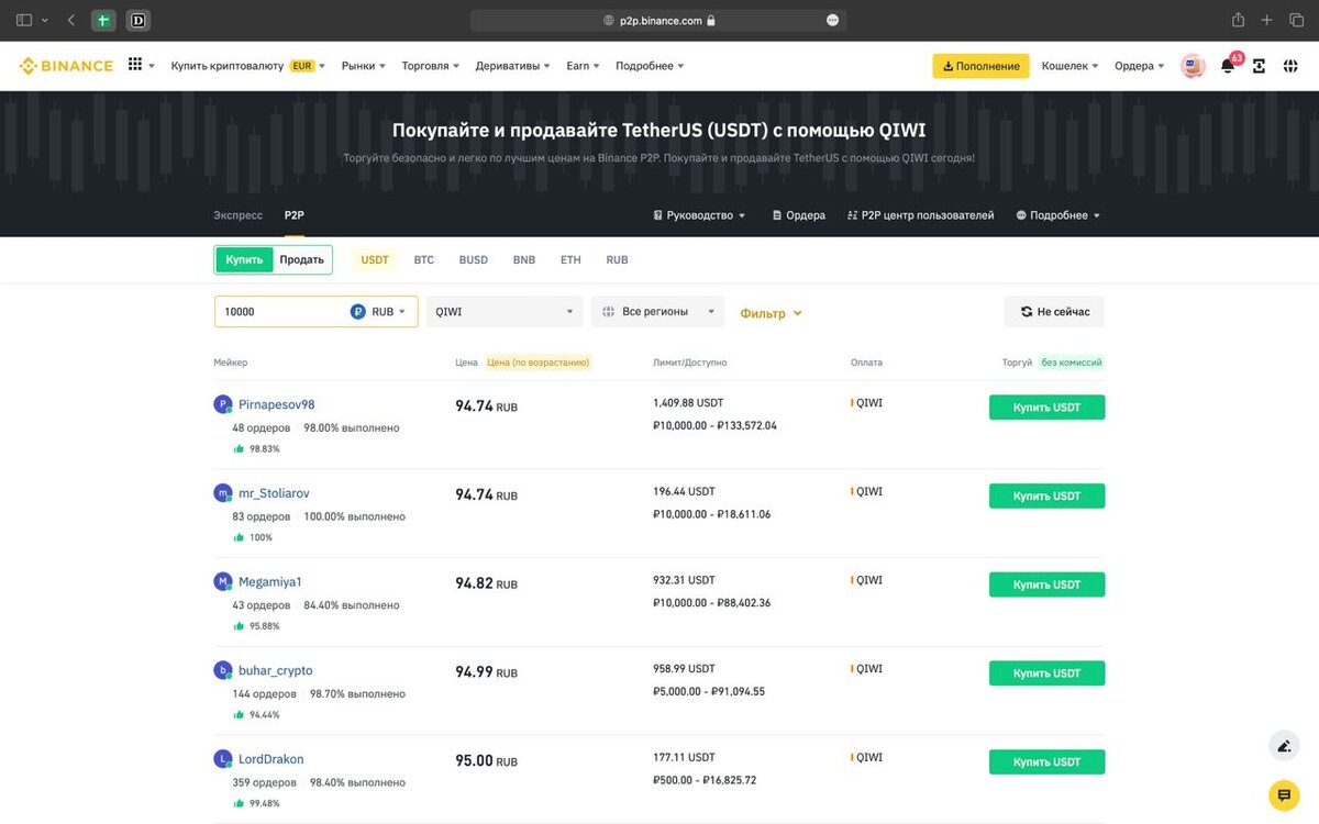 В ходе проверки Центробанк РФ ввел ограничения на вывод средств в размере 1000₽ в месяц! Я постарался собрать самые простые варианты вывода средств с QIWI на вашу карту 1) ЮMoney - этот способ отлично подойдет для сумм до 50 000₽. С QIWI кошелька переводим необходимую сумму на ЮMoney кошелек без какой-либо комиссии, далее с ЮMoney кошелька выводим по 3500₽ в сутки (дневной лимит) на карту любого банка. 2) Криптовалюта. Регистрируемся и заходим на биржу Бинанс (10-15 минут), заходим в раздел торговля, далее выбираем p2p , способом оплаты выбираем QIWI кошелек, далее выбираем объявление на продажу (выбирать лучше продавца, у которого больше завершенных сделок) далее нажимаем купить usdt. После этого, сразу же продаем usdt на карту своего банка, лучшая ликвидность - Сбербанк, Тинькофф. Минус такого способа в том, что из за разницы курсов мы теряем 1-3% Если возникнут сложности при выводе, всегда можете написать мне в tg @epiccflavaпл 3) мобильные операторы МТС/Тинькофф. Пополняем сим