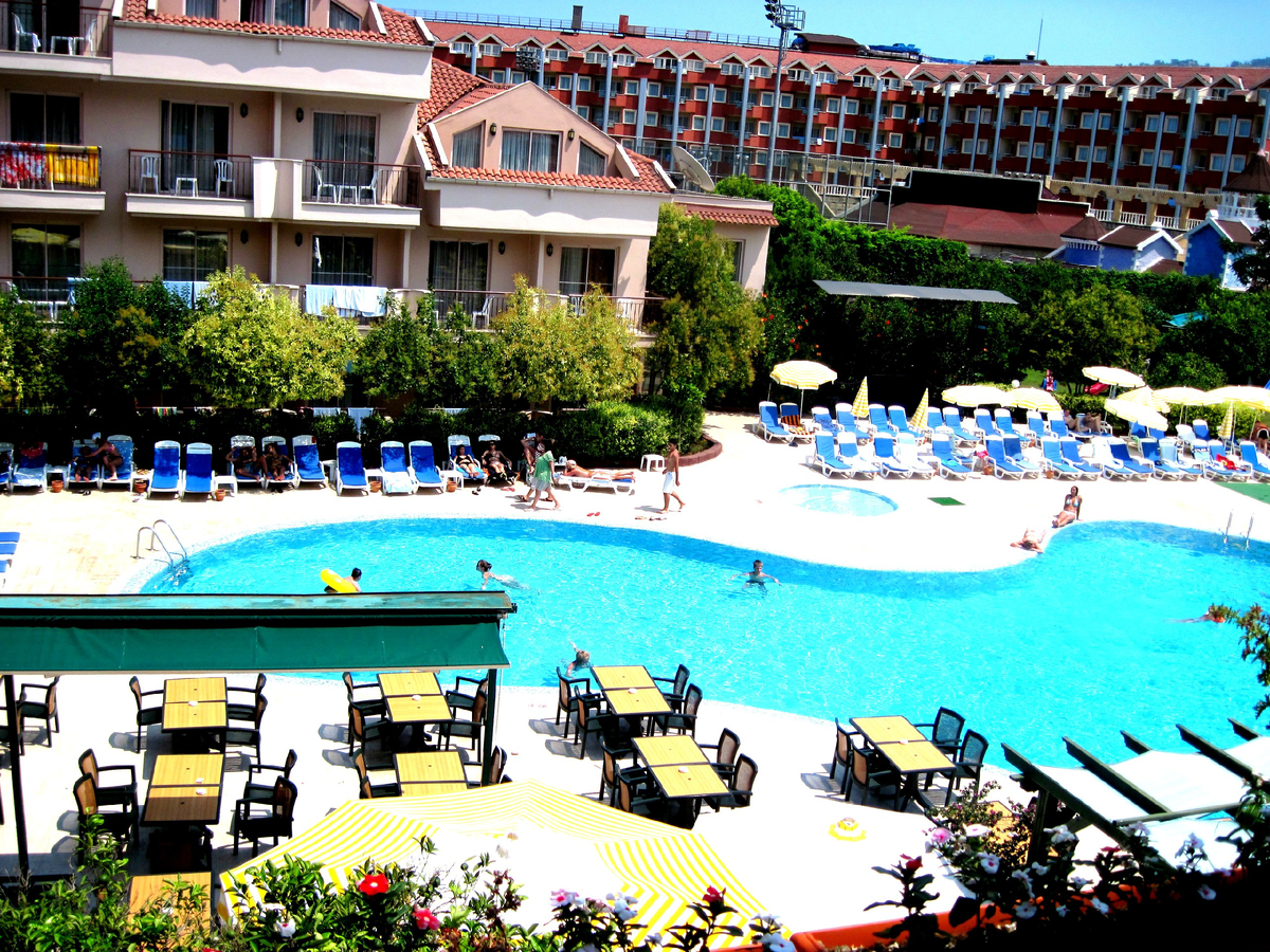 Всем привет! Пока у нас 'лето' -хотела поделиться еще одним местом для отдыха в Турции. Отель Kemer Dream, в рейтинге 4* -наиболее бюджетный вариант, если Вы хотите на море, но не хотите тратиться деньгами. Отель городской, расположен непосредственно в г.Кемер -да, это тот вариант, когда Вы выходите из отеля и видите не степь да пустыню, а цивилизованный город. Территория небольшая, почти центр города. Два корпуса в 3 и 4 этажа соответственно, два бассейна -детский и взрослый, основной ресторан и 2 "общепрофильных" бара. Отель стоит на второй береговой линии, но до пляжа недалеко. Вот прям поверьте :) Средним шагом минут 5-10 максимум -я хожу быстрым, точно не засекала. Отель задуман как семейный бизнес, владельцы -отец, уже преклонных лет, два сына, координирующих основную работу. Мы были там раз 5, причем почти подряд, с подругами еще из ВУЗа, чувствовали себя как дома! Важно отметить! -чистое море и нетипичные для побережья Турции, горные пейзажи. Горы близко и "впиваютс