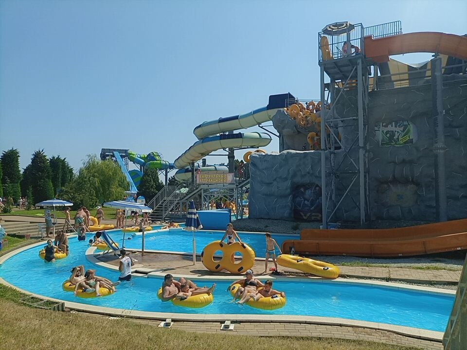 Всем приветик, вот я, оказывается, в аквапарке почти не фотографировала, а фото прошлого года не хочется использовать. Не до этого было! А видео много сняла. Мы зашли и сразу решили развлекаться, там есть где ) Но до этого надо было найти свободный лежак и это оказалось большой проблемой. В прошлом году в эти же дни в июле мы просто зашли и заняли два лежака. Все. В этом году мы несколько раз обежали по территории и ничего не нашли. Все занято. Это лишний раз подтверждает необычайный наплыв гостей в Геленджик в этом году ) Так и не найдя ничего, мы заняли столик в кафе и побежали купаться, уже просто не было сил ) После огромной очереди и поисков лежака очень хотелось окунуться. Внучка попросила бассейн с волнами, нам он очень нравится, с трудом отыскали его и занырнули ) Потом начали вояж по горкам. Планы у нее были большие и хочу сказать, что все они осуществились. Если в том году она выдержала полдня, то в этом году мы были почти до закрытия. Сразу попали на знакомые нам, дово