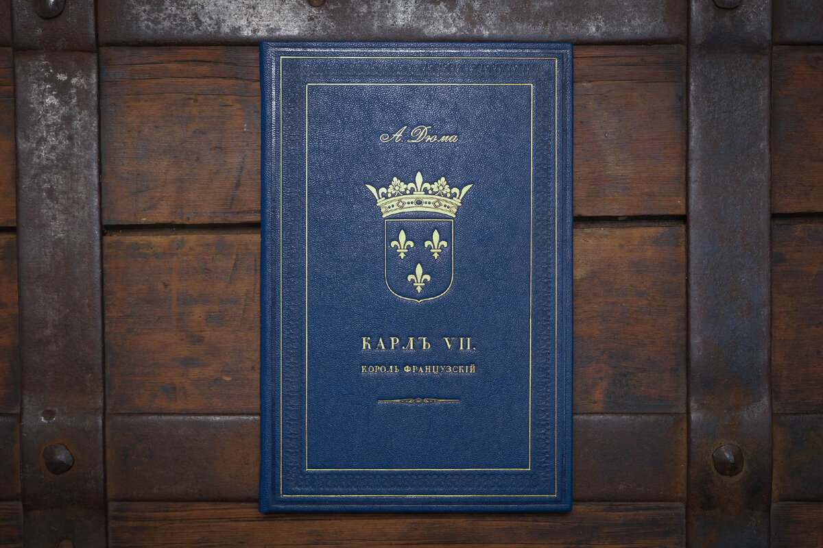 Сегодня в работе пьеса Александра Дюма-старшего “Карл VII Король французский драма в пяти действиях, в стихах” в переводе В. Мажевича. Пьеса пришла с ветхим и слабым блоком, с многочисленными дефектами в виде надрывов и заломов на страницах, а главное – без переплета. Мы укрепили и пересобрали книжный блок, отреставрировали каждый мельчайший дефект и перешли к созданию нового переплета. Выбор пал на кожу глубокого синего цвета с золотым тиснением на сторонках и корешке. Внутри книга отделана мраморной бумагой. Пьеса “Карл VII” удивляет формой написания: для Дюма нехарактерны произведения в стихах. Однако читать ее весьма интересно. Главный герой книги – Карл VII, известный как Победитель. Это сильное прозвище дано монарху благодаря долгожданному завершению Столетней войны и громким победам французских войск под началом Жанны д’Арк. В период междуцарствия, когда предыдущий монарх преставился, а на трон было несколько претендентов, в числе которых наш герой, Карл был подавлен и сомневалс