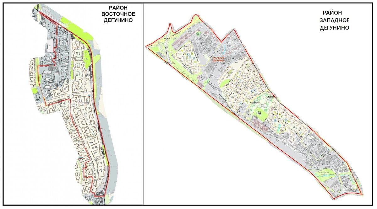 Распоряжением Мэра Москвы в сентябре 1991 г. были установлены временные границы муниципальных округов Москвы, в число которых вошли и муниципальные округа Восточное и Западное Дегунино в составе Северного округа