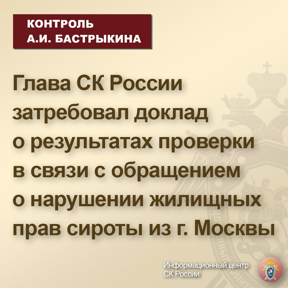 Глава СК России затребовал доклад о результатах проверки в связи с обращением о нарушении жилищных прав сироты из г. Москвы