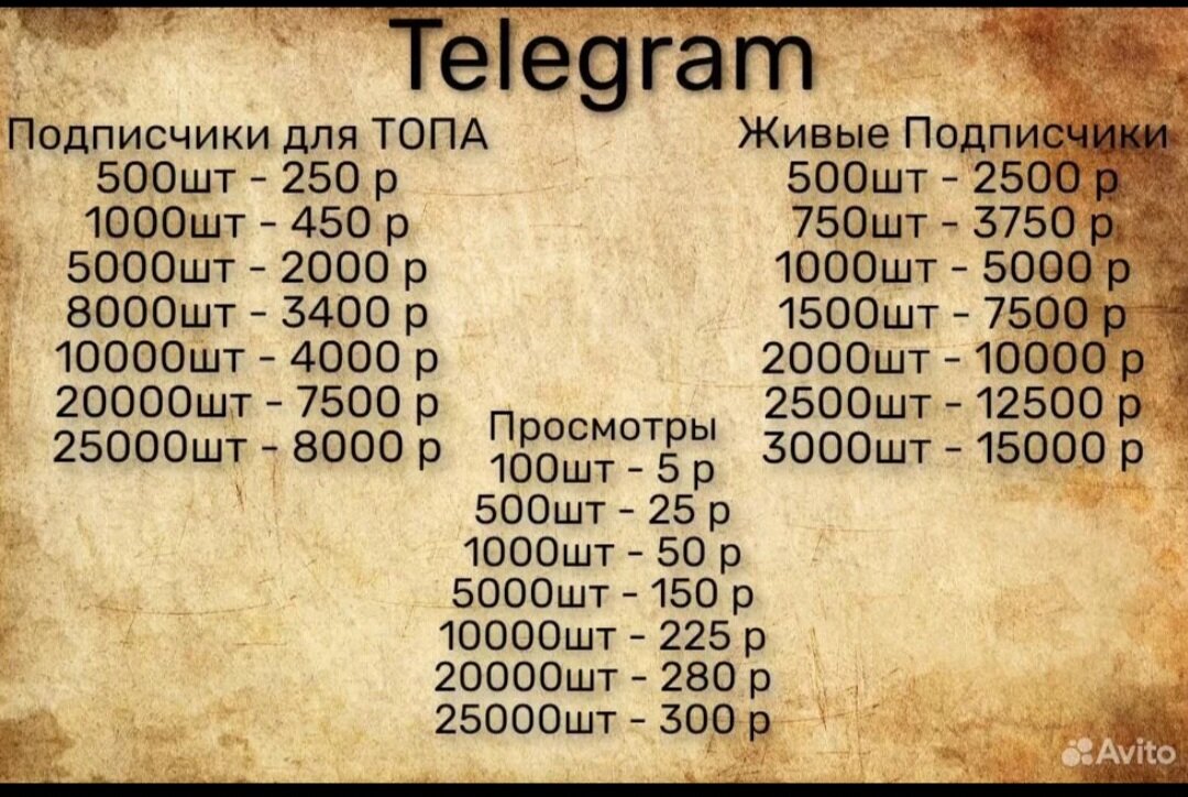 Доброе субботнее утро, уважаемые читатели. Сегодня как обычно статья с юмором. На Авито выпала реклама мне с продажей подписчиков, лайков и т.д. в соцсетях. Как видите, для примера цены Телеги. Где-то читал, что в телеге рекламу продают по 1 руб за подписчика на сутки. Т. Е. Отличный бизнес проект: запускаешь канал, покупаешь за 8тыс 25000 подписчиков, пишешь пару месяцев заметки/репосты и т.д. Договариваешься, что подписчики добавляются не сразу, а постепенно, для правдоподобия. Ну и потом попадаешь в пулы для продажи рекламы и напрямую тоже продаёшь. Расходы: 8 тыс + время. Два месяца раскрутки. Первая же реклама приносит 20 тыс рублей (предположим, ещё есть расходы какие-то). Все расходы перекрыты. Продаёте 10 реклам по 20 тыс. = 200тыс рублей. Покупаете ещё 25-50 тыс подписчиков. Ещё продаёте 21 рекламу по 50тыс = 1 млн чистого дохода. Таких каналов можно запустить 10 штук. Также можно купить и какое-то количество "живых" подписчиков и просмотров. Вот и 1+ млн за 4-5