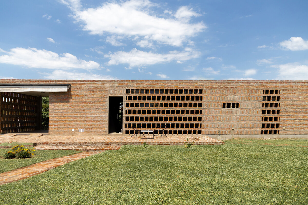 Проект AR House от Valeria del Vecchio — простой одноэтажный дом в Аргентине с оригинальной кирпичной кладкой, которая защищает коттедж от различных погодных условий.