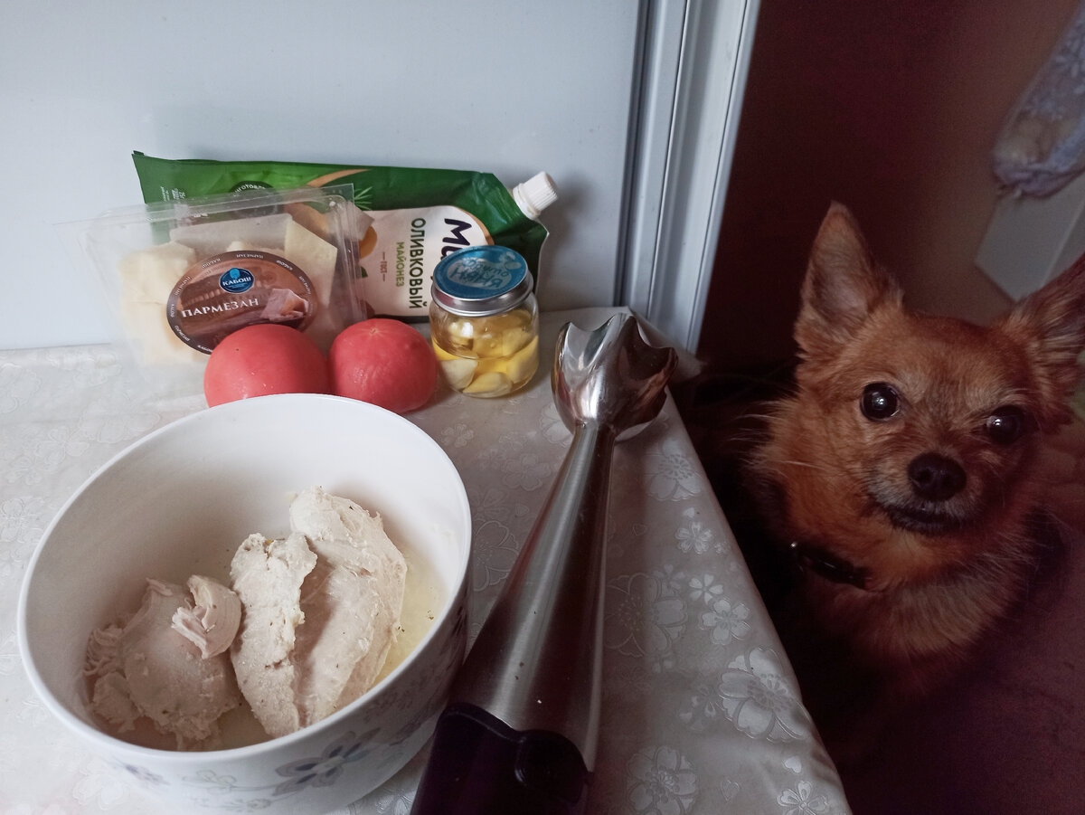 Сегодня день "по сусекам поскребу". Нужно разобраться в сусеках, где что завалялось, залежалось, что-то доесть, что-то спасти. Знакомая рассказала что ненавидит варёную куриную грудку, ненавидит диету и всё, что с ней связано. У меня как раз тот самый случай, когда отварная куриная грудка не зашла и ждёт своего часа в кастрюльке. Рядом с ней уставшие помидорки и огурчики. Спасаю продукты Намазка из куриной грудки в идеале, она готовится с натертым на крупной тётке солёным огурцом, с добавлением творожного сыра, можно что-то копченое добавить. Но у меня ничего этого нет. Готовлю из того, что наскребла. В варёную куриную грудку добавляю несколько ложек бульона и измельчаю её блендером. 215 грамм грудки Тру на треке пармезан (можно любой другой сыр) 28 грамм Чеснок (14 грамм) , соль, перец по вкусу. Майонез я решила не добавлять. Затем режу огурчики, помидорчики, на них выкладываю намазку. Чудесная летняя еда готова! Половина намазки ещё осталась. Завтра пристрою😉 А пре