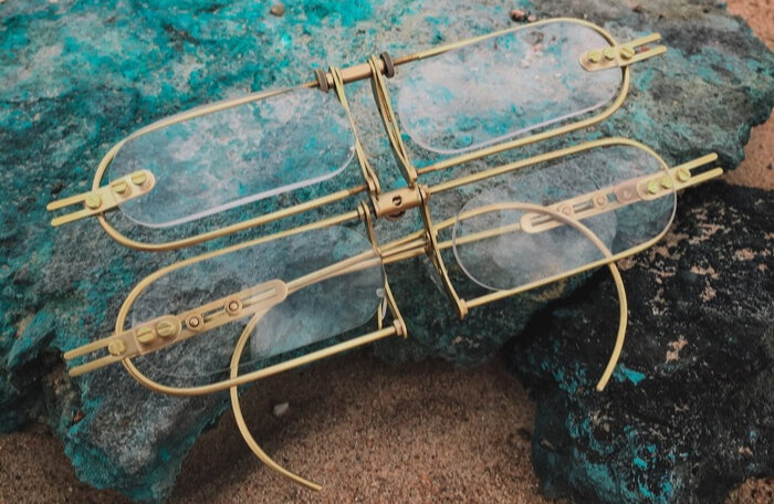И снова привет, Пикабу!:) Уже немало очков и гогглов в стиле стимпанк я создал, а это — новая ступень эволюции. Загляните, присмотритесь:) Вот что получается, когда заказчик даёт такое техническое задание, которое позволяет вовсю использовать полёт фантазии в работе. Нужны стимпанк очки, да не простые, а золотые латунные. Главное условие — 4 линзы, которые могут взаимодействовать друг с другом. Первое, что пришло на ум — отказаться от стандартных круглых линз в пользу формы поинтереснее. И вот она нарядная продолговато-овальная, что сразу меняет дело. Рисую эскиз, передаю рецепт мастеру-оптику, жду неделю — и получаю красивые прозрачные стекляшки. Поликарбонатки, если быть точнее. Вес — это надёжность, но здесь тяжесть стеклянных линз неуместна. Время в ожидании линз даром не терялось, я вертел в голове различные варианты оправы, попутно зарисовывая возникшие на фоне задачи идеи, но уже для других очков:) После нескольких черновых проб выбор был сделан в пользу данного варианта. Теперь