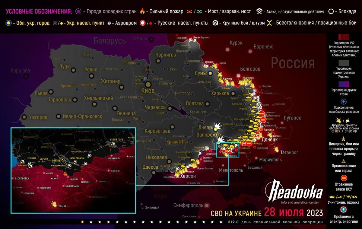 Карта военных действий и ситуация на фронтах вечером 28 июля