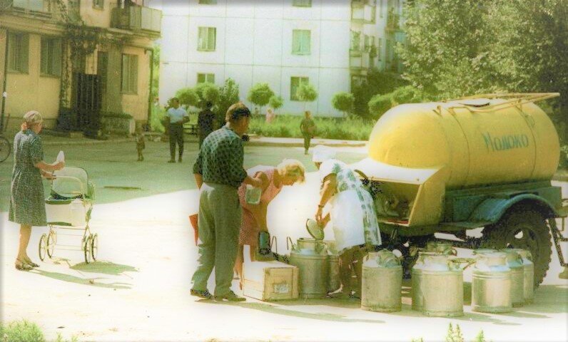 Сквозь дрему слышно, как ходит по дворам продавщица и однообразно кричит: «Есть в продаже ма-ала-ако-о-о!..» Желтую цистерну с молоком каждый лето привозят и ставят возле нашего дома. Его покупают в основном пенсионеры. В будние дни у цистерны почти никого не бывает, продавщице скучно и жарко, иногда она встает, обходит дворы и кричит: «Есть в продаже ма-ала-ако-о-о!..»