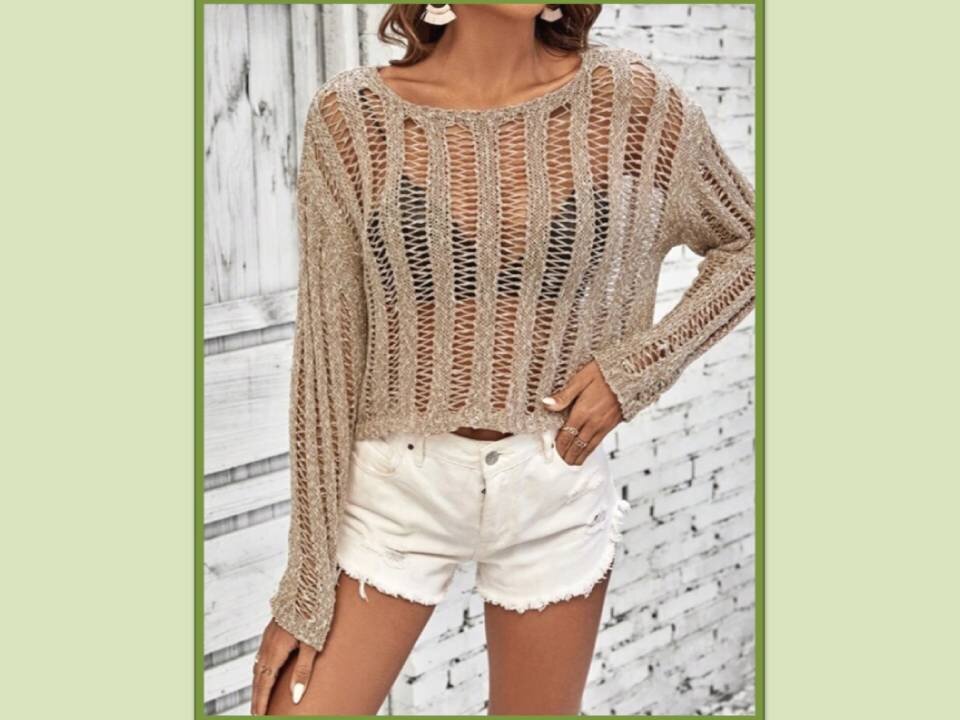Вот и июль близится к завершению, а жара всё не спадает, как началась с первых чисел апреля, так и не заканчивается, а живём мы на Урале. Как правило вязаная одежда ассоциируется с холодным временем года, но и летом, даже в жару трикотажные вещи из вискозной или хлопковой пряжи прекрасно дополнят летний гардероб. Вискозная пряжа отлично охлаждает кожу. Волокно имеет искусственное, но не синтетическое происхождение. По своим свойствам вискоза очень близка к натуральным нитям. Вязаный трикотаж с крупным плетением, хорошо смотрится как с шортами, так и на контрасте с полупрозрачными, лёгкими тканями. Объемный джемпер очень хорошо будет смотреться с лёгкой шифоновой юбкой в пол. Некоторые летние вещи, можно будет носить и с наступлением первых прохладных осенних дней. Вязаный топ с правильно подобранным низом помогут составить стильный ансамбль и для начала осени.
