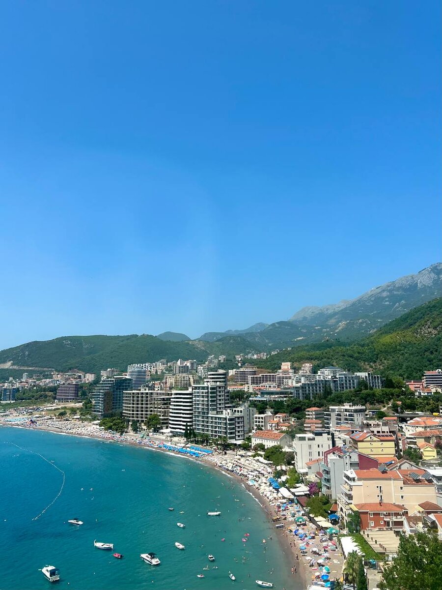 Черногория встретила нас жаркой и душной погодой около 33 градусов (20.07-27.07.2023г) Самолет прилетел в аэропорт г. Тиват в 9.30 утра по местному времени. Полет длился около 6 часов. Быстро прошли паспортный контроль (нужно было показать ваучеры, выданные турфирмой в Узбекистане), получили багаж. На выходе из аэропорта нас уже встречали сотрудники с табличками турфирм. Нашли нужную и прошли в ожидавший нас автобус. Все четко и быстро. Комфортабельный «Мерседес» с кондиционерами довез нас до отеля. Трансфер с аэропорта входит в стоимость путевки.