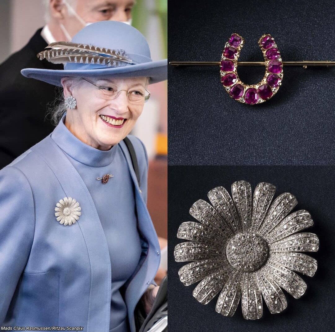 Короли отдыхают, а у нас есть время присмотреться к важным деталям их жизни. В Дании во дворце Амалинборг прошла выставка «Королевская шкатулка с драгоценностями - ювелирная ретроспектива 50 лет на троне», посвященная юбилею правления Маргрете II. И среди экспонатов можно было увидеть две ее любимые броши с историей. Во-первых, подкову которая была на королеве, когда 15 января 1972 года с балкона дворца Кристиансборг было объявлено о ее восхождении на престол. Эта брошь была подарком принцессе Маргрете от отца - короля Фредерика IX в 1953 году, после того как он подписал поправки в Конституцию страны, позволяющие женщинам наследовать трон, то есть, вместе с брошью она получила перспективу стать королевой. А бриллиантовую маргаритку ей подарила мать - королева Ингрид - на 60-летие Маргрете в 2000 году. Бриллианты в броши ранее принадлежали матери Ингрид, кронпринцессе Швеции Маргарете, которая умерла в 1920 году. В семье Маргарету звали Дейзи (маргаритка на английском). В 1935 году шве