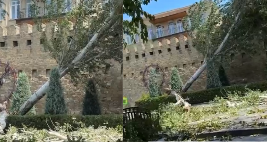 Сильный ветер в столице вызвал ряд негативных последствий. Соответствующие кадры распространились в социальных сетях. Как видно, в результате погодных явлений было повалено дерево возле Ичеришехер. Видео по ссылке: #ветер #погода #баку #новостиазербайджана #mediaaz