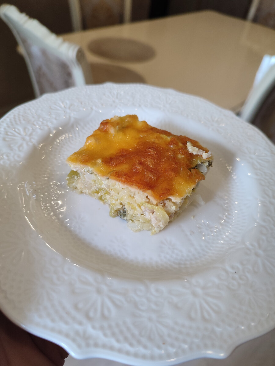 У меня сошлись звёзды: и кабачок лежит без дела, и фарш остался от фаршированных перцев. И даже три ложки сметаны умоляли, чтоб их уже использовали. В общем, сделала я кабачковую запеканку. Для любителей кабачка вкусненько. Муж кабачок не любит. Его сердце рецепт не растопил. Итак. Рецепт прост и быстр, спасибо за то, что им со мной поделились. Потерла на крупной тёрке половину кабачка, добавила фарш, лук кубиком, перец кубиком, зелень. Разбила в данную смесь два яйца, добавила три столовые ложки сметаны, соль и перец. Все хорошо перемешала и выпекала в духовке минут 40. Потом посыпала тёртым сыром и ещё 10 минут выпекала до румяной корочки. Вкусненько. Делала на ужин. Очень лёгкий вариант и по калорийности, и по трудозатратам.