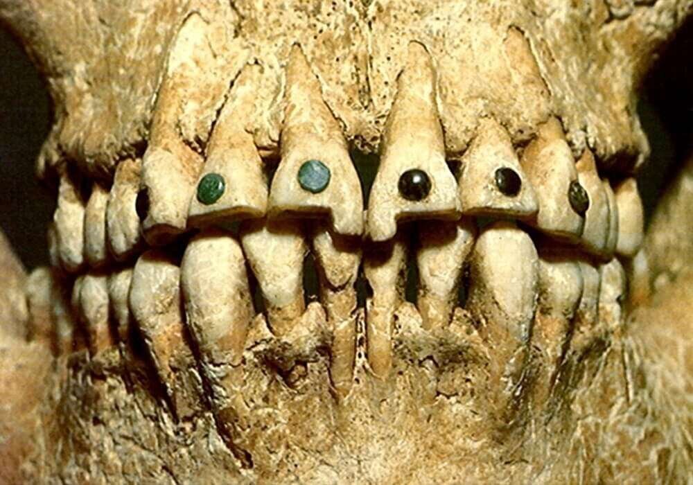 Изучая останки людей племени майя, специалисты обнаружили достаточно высокий уровень стоматологии. Еще до того, как европейцы украшали свои рты золотом, древние майя устанавливали на своих зубах нефрит, золото, бирюзу, гагат или гематит.