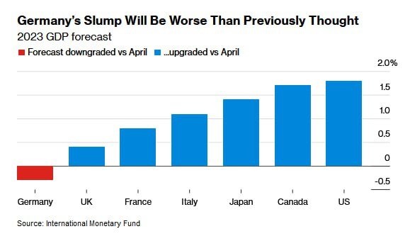 Экономика Германии - крупнейшая в Европе - испытывает трудности с ростом, и, судя по всему, эта слабость сохранится. Появившиеся на этой неделе новости о том, что в прошедшем квартале рост экономики не возобновился, а также слабые данные опросов за июль свидетельствуют о том, что страна, долгое время считавшаяся локомотивом роста в регионе, в настоящее время тормозит его перспективы. 2023[BBG]