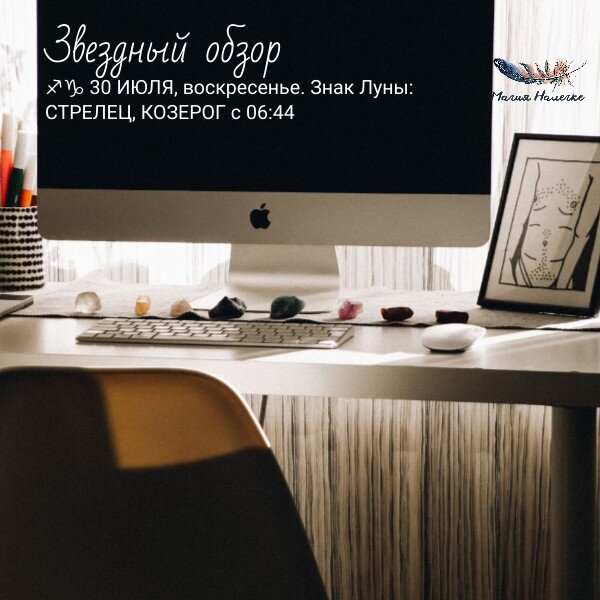 Наводки на новый день! ♐♑ 30 ИЮЛЯ, воскресенье. Знак Луны: СТРЕЛЕЦ, КОЗЕРОГ с 06:44 Тренды дня: Сегодня Луна заходит в знак Козерога и будет весьма гармоничной, поэтому многие дела будут решаться проще, если мы будем подходить к ним с позиции взрослого. День очень даже продуктивный и деятельный. Если таки выдался выходной и решение рабочих вопросов не планировалось, то можно заняться уборкой в доме. Луна в Козероге поддерживается гармоничным секстилем от Сатурна, что обращает наше внимание на порядок вокруг нас. В голове, на рабочем столе, дома. За наведением порядка можно обрести новое понимание старых проблем. Если рабочие вопросы таки наметили решать, то звезды нам в помощь. Трин между Меркурием и Луной поможет договориться и организовать выгодные для нас условия. И все наши движения будут точно не напрасными. На быстрых транзитах дня нынче можно переделать самую нудную работу, которую мы вечно откладывали в дальний ящик. И не только переделать, но и получить результат от нее в дал