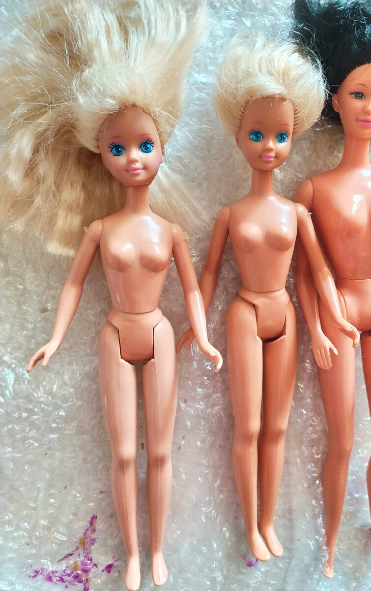 Доброго дня, всем заглянувшим! Сегодня расскажу про то, как приводила в порядок стареньких Скиппер. Одну девочку я определила как Skipper Cool Tops, 1989: А вот вторую не нашла пока, судя по загорелому скинтону, девочка из пляжной серии, позже поищу ещё, но если кто-то знает, буду рада, если подскажите! ☺️♥️ Так как, вся проблема у обеих девчонок заключалась в волосах, то и больших забот с приведением их в порядок не возникло. Первую нужно было причесать и приодеть, а вторую перепрошить и тоже одеть. Начну со Skipper Cool Tops. Ее волосы были в сохране, кроме того, что подстрижены. Их я помыла, причесала и обдала кипятком. Челку уложила заново. Подобрала одежду и вуаля: Если честно, состояние волос мне все равно не нравится, хотелось бы вернуть длину и волну. Поэтому как только я подберу материал для перепрошивки, то обязательно перепрошью эту девочку. Самое главное, что ее тело и милое личико в прекрасном состоянии, а волосы дело наживное. У второй девочки волосы были срезаны почти п