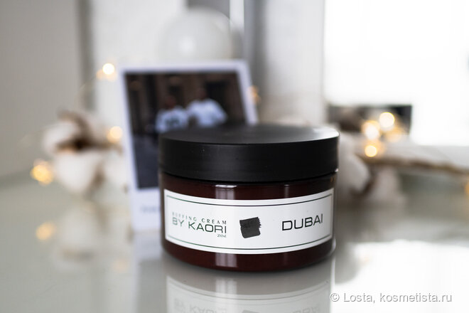 Как бы я не пыталась заменить скрабы массажем, сухими щетками, жесткими мочалками — я всё время возвращаюсь к данному типу продукта. Так как помимо скрабирования получаю ещё и уход за кожей. Результат действительно другой. Но не каждый скраб оставляет за собой приятные впечатления и его хочется повторить. Не буду таить интригу, но данный скраб оказался одним из лучших, что у меня были. Аромат я не выбирала, но была приятно удивлена, что мне достался аромат Dubai, так как в ОАЭ я провела целых 3 года, было интересно как озвучит его производитель. В целом, в линейке 8 отдушек: AfricaBelliniCherry BlossomDubaiFleurSantal SugarTobacco Vanilla Формат выпуска Скраб находится в банке-шайбе из темного коричневого пластика. Наклейка белая, минималистичная, с черными надписями. Смотрится строго и лаконично. Не создает визуального шума. Мне импонирует подача, именно к такому в последнее время стремится взгляд и выбор. Дополнительно есть защита от вскрытия в виде разовой наклейки на стыке банки и