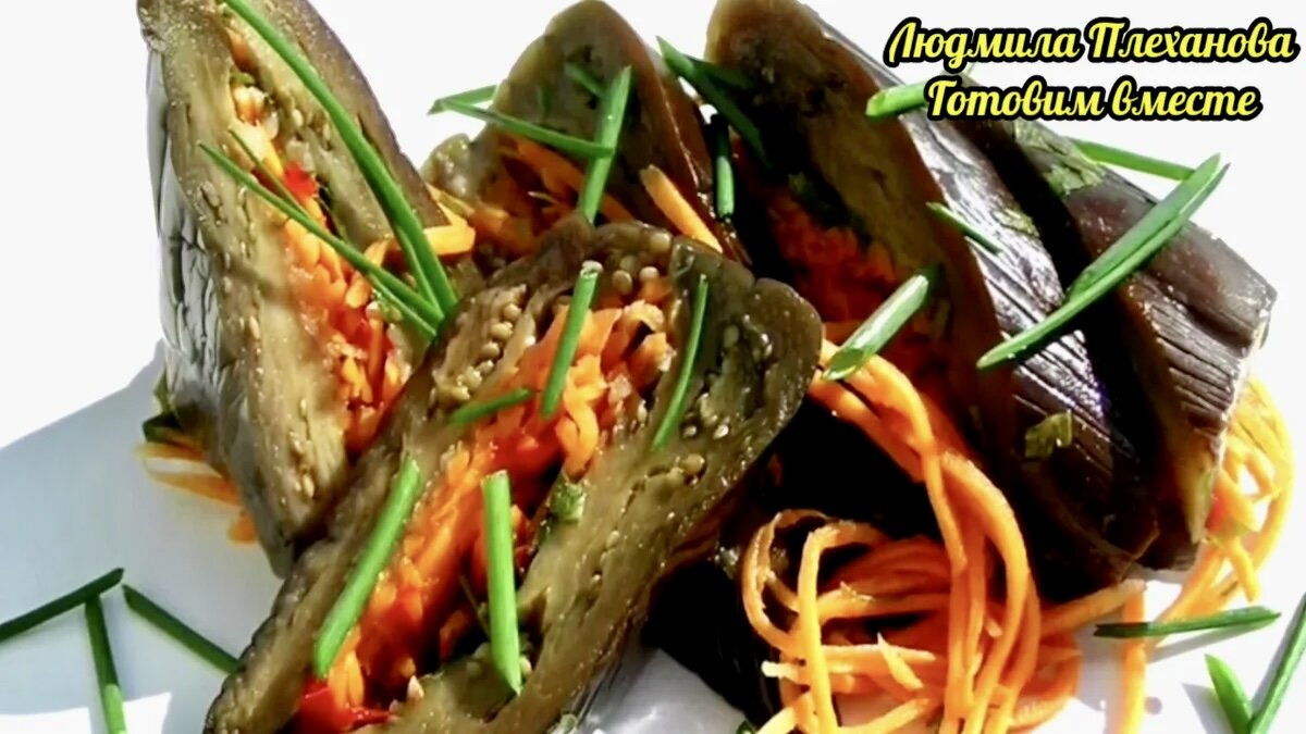 На мой взгляд, это полезная закуска из баклажанов, ведь в ней нет ни сахара, ни уксуса. А какие вкусные синенькие (и начинка) получаются