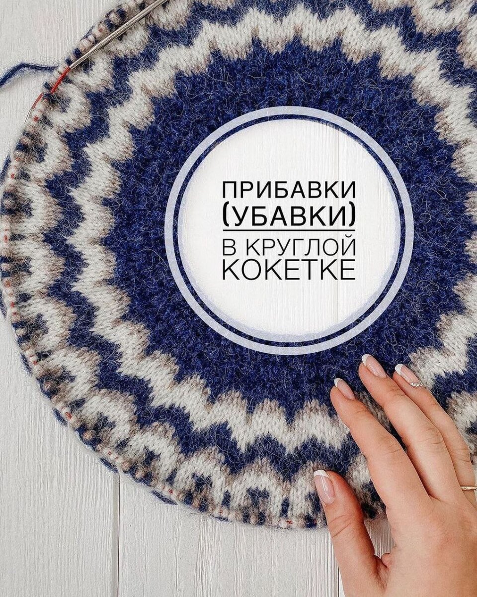 Идеально круглая кокетка. Прибавки (убавки) в круглой кокетке•⠀ ⠀ Если вы вяжете сверху-вниз вы прибавляете петли, если снизу-вверх - убавляете! ⠀ ⠀ Итак, есть 2 метода распределения прибавок (убавок):⠀ ⠀ 1. Метод прибавок для узора сегментами (клиньями). ⠀ ⠀ Сегмент- это расширяющийся клин узора от горловины к основанию, который повторяется по всей ширине кокетки. На фото представлен именно этот вариант, в моём случае 29 сегментов. ⠀ ⠀ Прибавки распределяются в верхней части кокетки, то есть например высота кокетки составляет 50 рядов, соответственно прибавки я буду размещать в 25 рядах. Смещение на 1-3 ряда незначительно, подстраиваемся под узор, чтоб прибавки были не заметны. ⠀ ⠀ Следующим шагом определяем сколько прибавок необходимо сделать в одном сегменте. Например: мой узор у горловины 5 петель, у основания 10, значит мне необходимо прибавить 5 петель.⠀ ⠀ Прибавки я распределяю равномерно, то есть в моем случае, в 25 рядах:5 петель= в каждом 5 ряду я должна сделать прибавк