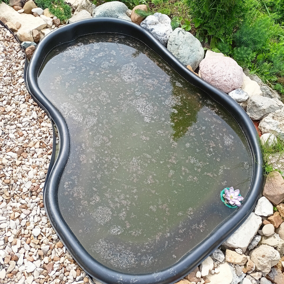В начале июня наш садовый прудик выглядел, как лужа на скотном дворе... Было много идей по очистке - рыбки, водоросли, химия. Химией пользоваться очень не хотелось. В пруду своя жизнь: ящерицы, жабы. Но в Леруа я нашла вот такой препарат Биоферменты обещали превратить мой прудик в ухоженное место , не повредив при этом ни одной живой особи))) Я насыпала чуть больше, чем положено ( дурацкая привычка сыпать на глаз) И вот результат: Зеркальная гладь пруда! Шикарно получилось, прям хоть пей))) На дне, конечно, есть еще какой-то осадок, но можно лобавить еще дозу и посмотреть, как будет Меня результат порадовал вполне. Препарат рекомендую. Стоит недорого, около 100 рублей. А вы как чистите пруд?