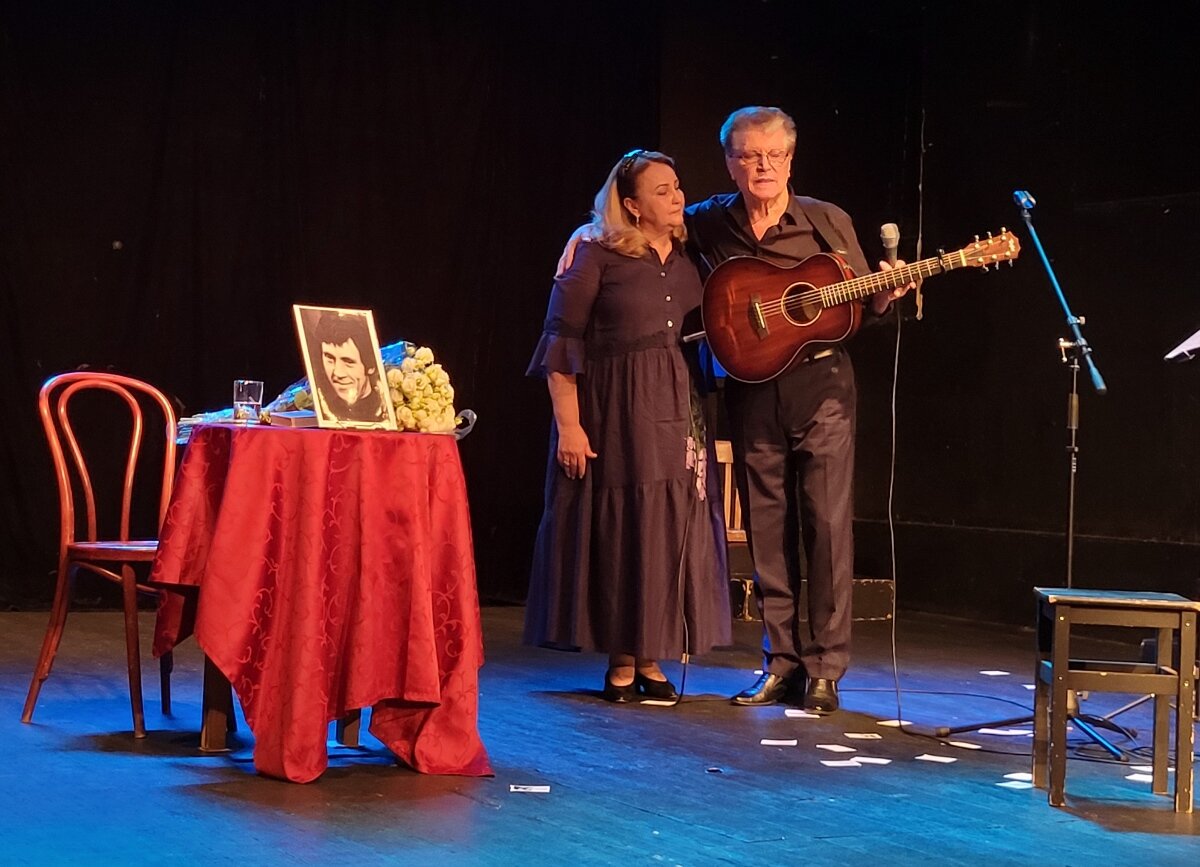 В день памяти Владимира Высоцкого в Музее-театре «Булгаковский Дом» состоялся спектакль «Я, Высоцкий Владимир» по мотивам книги Марины Влади «Владимир или Прерванный полёт», а также произведений Владимира Высоцкого. Исполнители – актёры театра на Таганке любимовского периода – заслуженные артисты России Любовь Чиркова и Валерий Черняев, режиссер — народный артист России Валерий Золотухин. Спектакль переплетался из фрагментов книги Влади и песен Владимира Семеновича, и что мне понравилось, актёры не изображали этих двоих людей, только делились их творчеством. И хотя финал их истории нам давно известен, погрузиться в детали было интересно. За два часа мы услышали (конечно крупными мазками) историю любви, которая длилась двенадцать лет: Мне меньше полувека — сорок с лишним, — Я жив, тобой и Господом храним. Мне есть что спеть, представ перед Всевышним, Мне есть чем оправдаться перед Ним Были и театральные байки с участием Владимира Семеновича и Валерия Черняева — монолог Хлопуши (во время