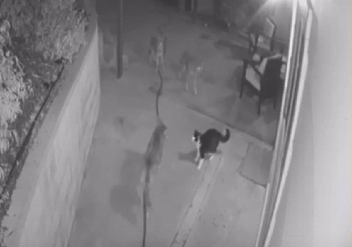 Видеокамера, установленная на территории частного жилища в окрестностях Лос-Анджелеса (штат Калифорния, США) запечатлела противостояние 8-летнего кота по кличке Макс с тремя койотами. Кот встретил трёх нарушивших границы его территории хищников и обратил в бегство одного из койотов. Чем бы закончилось неравное противостояние, остаётся только догадываться, но хозяева храброго питомца, увидев схватку в окно дома, выбежали во двор и испугали диких представителей местной фауны, которые разбежались в разные стороны. Источник