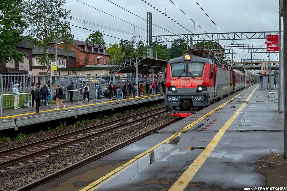 Замечу сразу – на станции Сходня я не должен был оказаться в принципе. У меня так-то был запланирован переезд из пункта М в пункт Т. А теперь немножко лирики. Как-то москвичи привыкли поругивать (а то и конкретно наезжать) ЦППК. В принципе есть за что, как кажется. Ровно до момента, пока не познакомишься с монстром по имени Московско-Тверская пригородная пассажирская компания. Которая легко и просто отменяет ВСЕ электропоезда, включая скоростные, часов на 6-7 (организовывая технологическое окно) без предупреждения всех тех, кто заранее (за несколько дней) брал НЕВОЗВРАТНЫЕ билеты на «Ласточку». Ну и дальше начинается разруливание поездок через разные станции, автобусные доставки севернее и пересадки. В итоге мне досталась Сходня и 40 минут до поезда далее. 1. В итоге я решил «поохотиться», но первый же поезд оказался для меня внезапным и, как следствие, не самый лучший кадр вышел. Прошедший поезд с электровозом ЭП20-038 подтвердил все самые худшие подозрения: как видно на снимке, все Э