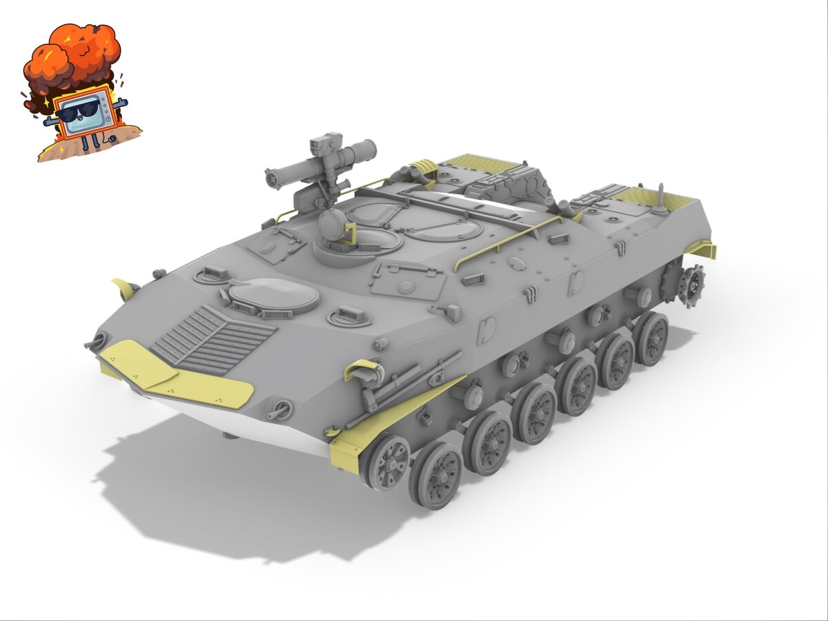 По сути осталось пару штрихов. По комплектации: Траки будут резиносмола. Из коробки можно будет собрать как линейный БТР-Д, так и "Истребитель Танков" БТР-РД с ПТУР. Декаль будет, но пока не приступил еще к разработке.