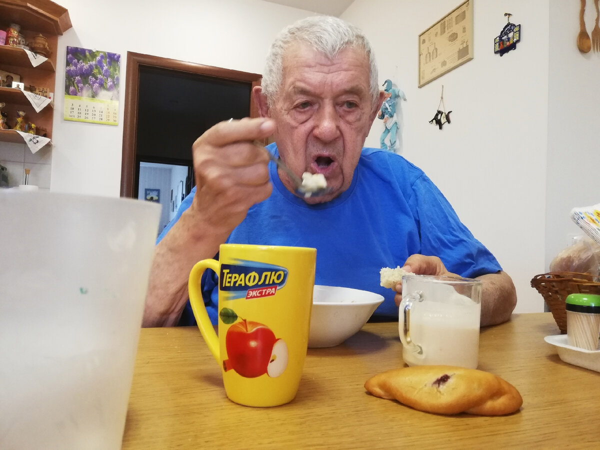 Дедушка мой живет у моих родители. И ухаживает за ним мама. Но родители уехали на несколько дней, потому ухаживать хожу я. Дедушка мало ходит, ему тяжело. Но не лежачий. Приезжаю два раза в день - утром и вечером. Кормлю, даю лекарства, кое-какие гигиенические процедуры.