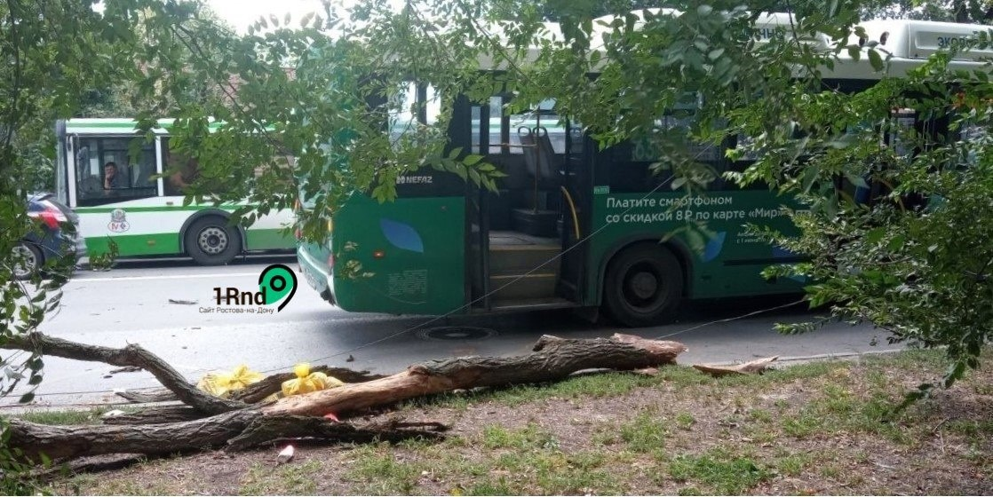 В Ростове на автобус маршрута №63 упало дерево
