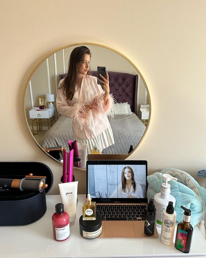 Из моих любимый секретиков для ухода— это нанести маску для волос с маслом на ночь , а затем смыть шампунем утром 🧖🏻♀️