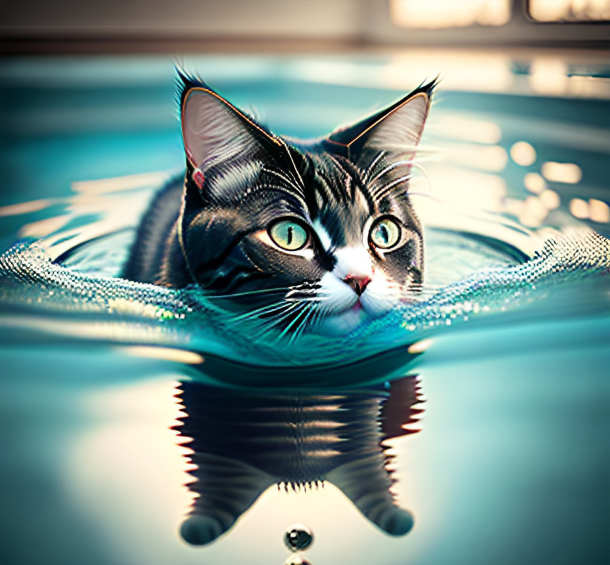 Однажды маленький котёнок по имени Пушок решил научиться плавать. Он был очень любознательным и хотел узнать все секреты воды. Пушок начал тренироваться в бассейне, пытаясь держаться на воде. Он учился делать гребки лапками и поворачивать голову. Но каждый раз, когда он пытался плыть, его лапки соскальзывали и он падал на дно. Тогда Пушок решил обратиться за помощью к своему хозяину. Он рассказал ему о своих проблемах и попросил научить его плавать. Хозяин был очень рад помочь своему маленькому другу и начал учить его плавать. Они начали с простых упражнений, таких как лежание на воде и гребки лапами. Затем они перешли к более сложным упражнениям, таким как плавание на спине и на животе. Через несколько дней Пушок уже мог плавать довольно хорошо. Он научился держать голову над водой, делать гребки и поворачиваться в разные стороны. Теперь Пушок был уверен в своих силах и мог плавать в любом водоеме. Он понимал, что вода - это его стихия, и что он может наслаждаться ею в полной мер