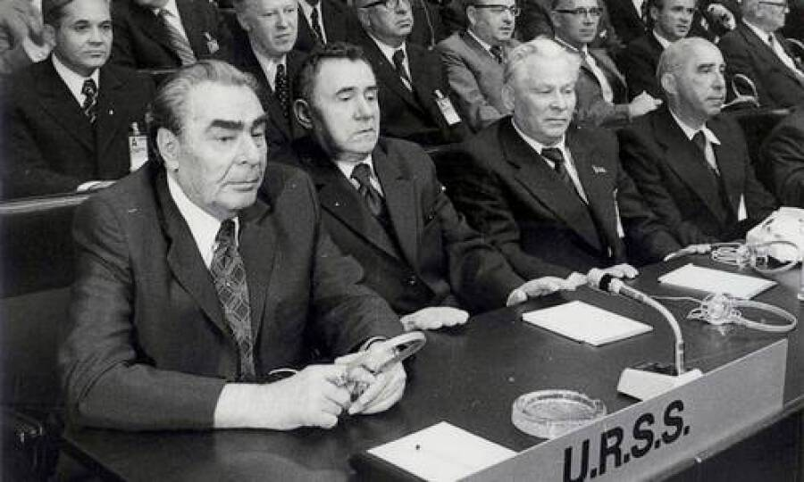 30 июля 1975 года началось подписание Заключительного акта Совещания по безопасности и сотрудничеству в Европе, известного как Хельсинкская декларация. Документ подписали главы 35 государств. Он ознаменовал высшую точку в налаживании позитивных международных отношений в эпоху холодной войны. Пора сближаться С началом 1960-х годов международная обстановка стала сильно меняться. Из-за советско-китайского конфликта произошёл раскол международного коммунистического лагеря, позиции СССР оказались ослаблены. Ещё тяжелее было состояние блока капиталистических стран. Штаты завязли в войне в Индокитае, по Западу прокатились волны народных выступлений, в 1969-м прибавился экономический кризис. Из-за такой международной нестабильности угроза Третьей мировой войны становилась всё более реальной. И когда к середине 1970-х ядерная мощь двух сверхдержав стала приблизительно одинаковой, было решено искать возможности к сближению. Ложка американского дёгтя К моменту знаменательной встречи в