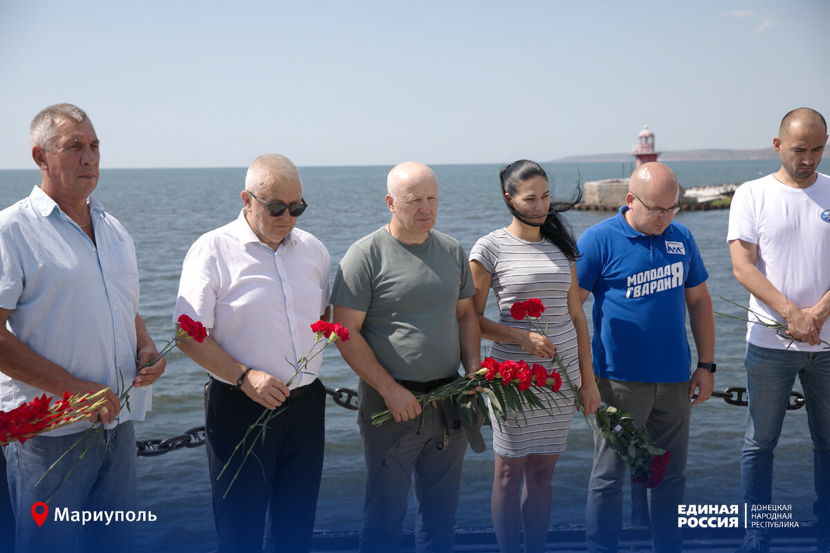 Цветы к мемориальной доске героически погибшим морякам Новороссийской военно-морской базы возложили единороссы в Мариуполе. Почтили память героев первый заместитель председателя Правительства ДНР Роман Орноев, секретарь мариупольского местного отделения Единой России Олег Моргун, участники предварительного голосования Тамара Арутюнова, Наталья Сотникова, Геннадий Янковский, Никита Аверкин и Григорий Соболевский. «В день Военно-морского флота мы вспоминаем многовековую морскую славу нашей Родины – символ сильного государства и одну из основ его обороноспособности. Чествуем тех, кто в штиль и штормы охраняет водные рубежи нашей страны», – сказал Олег Моргун. Он вручил благодарность командиру Мариупольского порта Григорию Соболевскому. Под руководством Соболевского морские ворота нашей Республики быстро восстанавливают свою мощь. #ЕРДНР #ЕдинаяРоссия #МыВместе #ВМФ