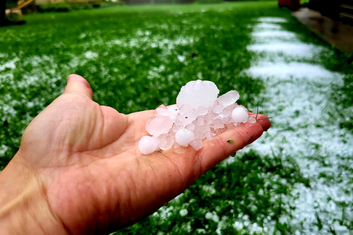 Вот такой град был у нас в эти выходные...прилетела чёрная туча как реактивный истребитель начала извергать из себя дождь с градом. В считанные минуты град изрешител наши посадки в огороде, пробил сайдинг на даче и оставил вмятины на машине, ливень затопил дорожки и всю дачную территорию. Вот такие сюрпризы подкидывает нам природа в этом году. А как дела обстоят в вашем регионе?