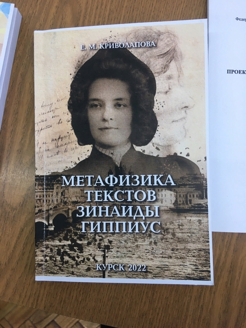 Но вот наконец лёд тронулся, и настоящий прорыв осуществлён в Курске! «Метафизика творчества Зинаиды Гиппиус» – так называется книга доктора филологических наук, профессора кафедры литературы КГУ Елены Криволаповой. И уникальность, таким образом, в том, что это первая и пока единственная отечественная монография, посвящённая знаменитой в своё время поэтессе, парадоксально выпавшей из поля зрения потомков.