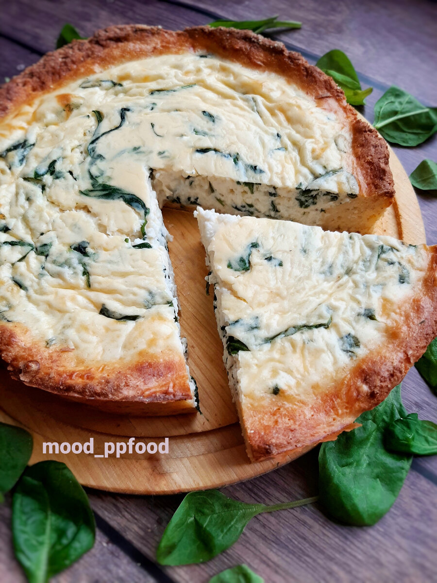 🔅КБЖУ на 100 г.: 209 ккал 16/11/11.4 Выход: 600 г. 🔅Ингредиенты: ▫️Для основы: Творог 5% - 180 г. Яйцо куриное - 1 шт. Мука Цельнозерновая - 40 г. Мука Кукурузная - 40 г. Разрыхлитель - 1/2 ч.л. Соль - 1/2 ч.л. ▫️Для начинки: Шпинат - 50 г. (У меня свежий) Масло сливочное 82.5% - 10 г. Яйцо куриное - 2 шт. Рикотта - 200 г. Сыр лёгкий - 60 г. Соль по желанию, мне хватило солености от сыра 🙂 🔅Приготовление: 1️⃣ Начнём с основы: 180 г. творога разминаем вилочкой и перемешиваем с яйцом. 2️⃣ Добавляем по 40 г. цельнозерновой и кукурузой муки, по половинке чайной ложки разрыхлителя и соли. Замешиваем мягкое тесто. 3️⃣ С помощью столовой ложки или пальчиками распределяем тесто по форме для запекания (18 см., силиконовая). Формируем бортики, накалываем вилочкой и убираем в разогретую до 180° духовку на 15 минут. 4️⃣ Шпинат, у меня свежий, измельчаем ножом. 5️⃣ Сковороду нагреваем и смазываем маслом, перекладываем в неё наш шпинат и обжариваем буквально минуту-две. 6️⃣ К рикотте доб