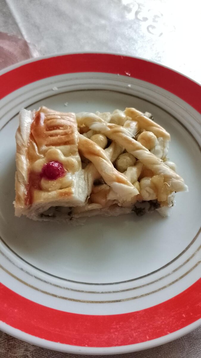 Слоёный пирог с начинкой из щавеля и яблок