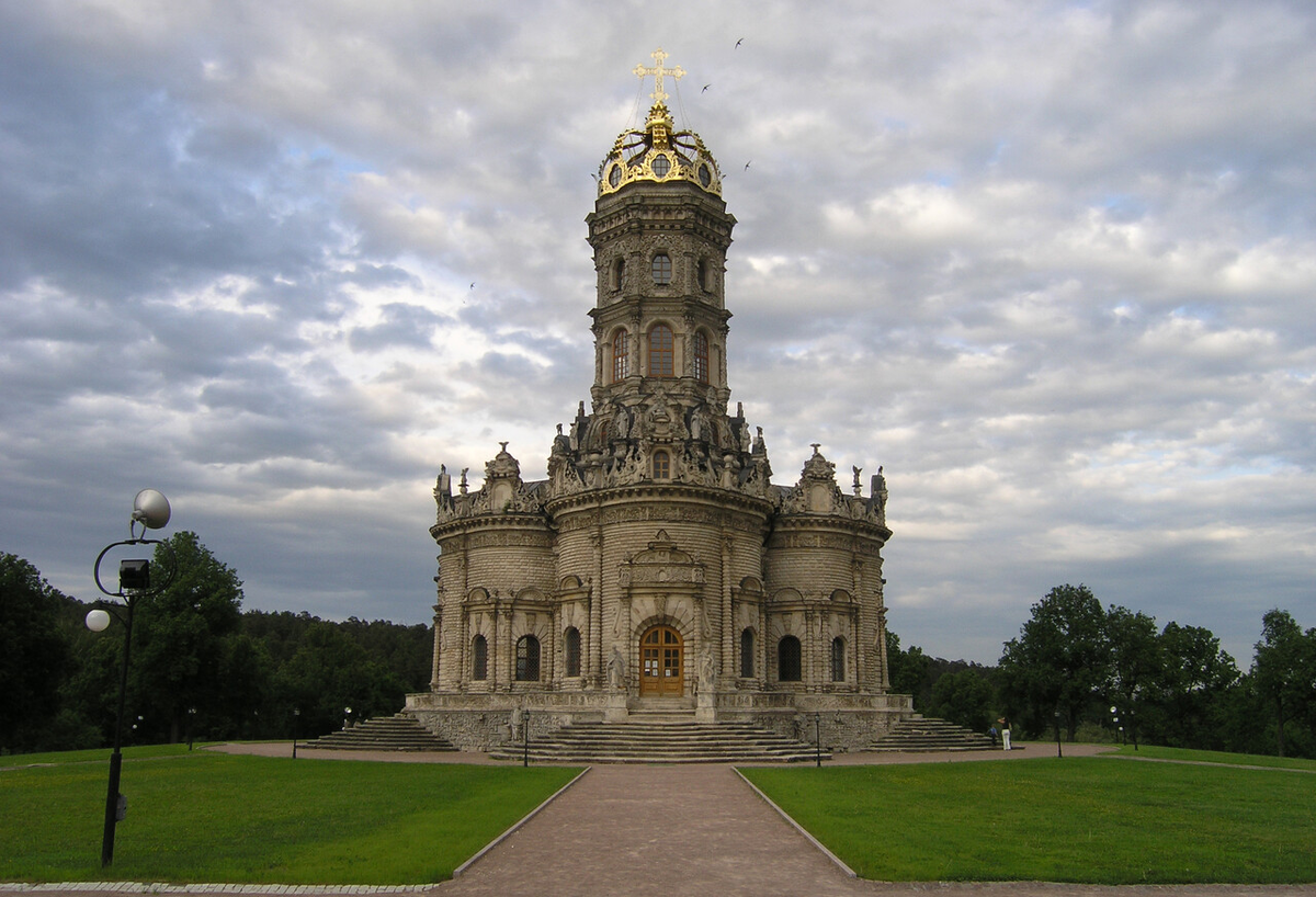 Усадьба и храм на высоком берегу Пахры хорошо известны местным молодоженам — все локальные свадебные торжества совершаются именно тут. Впервые Дубровицы упоминаются в переписных книгах Перемышльской церковной десятины за 1627 год как вотчина боярина Ивана Морозова. Основной корпус усадебных зданий был заложен в конце XVII века — строительство затеял Борис Алексеевич Голицын, воспитатель и сподвижник Петра I. Именно при нем началась закладка одного из самых красивых и необычных храмов Подмосковья — церкви Знамения Пресвятой Богородицы. Храм, особенно на фоне стандартного классицизма главного здания усадьбы, и сейчас впечатляет. Венчает его не обычный купол, а настоящая корона. Внешнее и внутреннее убранство церкви далеки от стандартов русского храмового зодчества — сооружение обильно украшено каменными скульптурами апостолов, резным орнаментом, лепными рельефами. Это не удивительно, ведь в постройке принимали участие выписанные князем из-за границы европейские мастера. Церковь столь пох