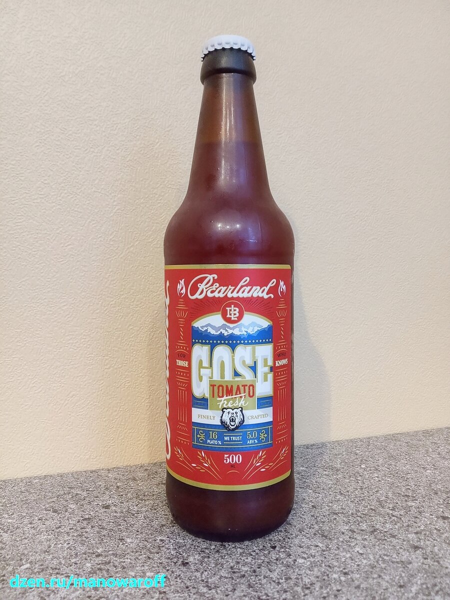 Сегодня у нас еще одна томатка от контрактной питерской пивоварни Bearland. Острая версия гозешки была просто отличной (ссылка на обзор внизу статьи). Посмотрим, каким будет не острый вариант. Сорт появился в феврале прошлого года. Моя бутылка из июньской партии, а откупорил я ее через пару месяцев после розлива. Срок годности составляет 24 месяца при хранении даже не в холодильнике. В составе присутствуют следующие ингредиенты: ТТХ: Пиво похоже на разбавленный томатный сок. Пены нет. Пахнет помидорами, болгарским перцем, базиликом и слегка чили. Во вкусе помидоры, базилик с паприкой, легкая кислинка. Соли, в принципе, достаточно, но на мой вкус можно было бы еще чуток добавить. Послевкусие помидорное, пряное. Несмотря на присутствие в составе чили, остроты нет совершенно. Хотя, если сделать несколько глотков подряд, то в послевкусии появляется едва заметная остринка. Пьется отлично. Вкусная томатка, хотя острая версия мне понравилась больше. И не только из-за остроты - там и органолеп