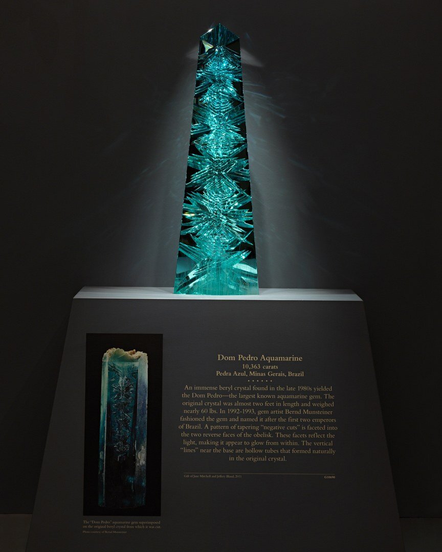 В Смитсоновском Национальном музее естественной истории представлен Дом Педро Аквамарин, один из крупнейших в мире драгоценных камней аквамаринов. Аквамарин «Дом Педро» - это крупнейший в мире ограненный аквамарин, весом в 2 кг, который принадлежит Смитсоновскому институту. Камень уникальный и великолепен, подобного экземпляра просто не существует в природе. Сейчас эта красота выставлена для всеобщего обозрения на территории Национального музея естественной истории в Вашингтоне и радует глаз любого желающего.