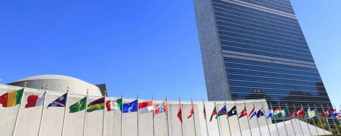 Протестующие против отправки военной помощи Киеву собрались у здания штаб-квартиры ООН в Нью-Йорке