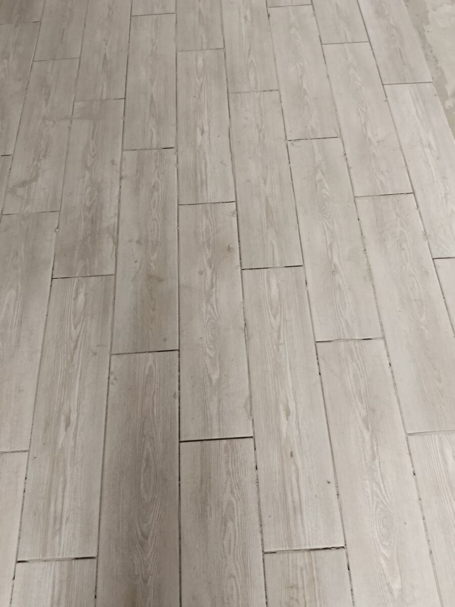 Здравствуйте! Вот и приступил к укладке керамогранита в последней комнате на объекте в Крымской глубинке. Залитая после не большой передышки стяжка подсохла, поэтому начал укладывать покрытие. Как уже рассказывал укладываем на клей Недра для керамогранита, он ds 3, специально для такого покрытия. Легкий в работе, очень крепкий. Заказчику на базе подсунули почти такой же клей, только эконом, ds 1, вот с ним уже сложнее работать, особенно на стенах. Но смешал в одном ведре оба клея, и так израсходовал. А вообще , у меня такое чувство, что я его больше убираю, чем клею. Клей то такой, не почистишь сразу, потом умучаешься швы под расшивку чистить, да и с самого кафеля отмыть очень сложно. Керамогранит не гладкий, с текстурой, так что мою и мою. Попутно успел стены заштукатурить гипсовой штукатуркой. Штукатурка для машинного нанесения, хитрый производитель в инструкции написал, что не несет ответственности если наносишь вручную. В коридоре она уже под финишной и под покраской и